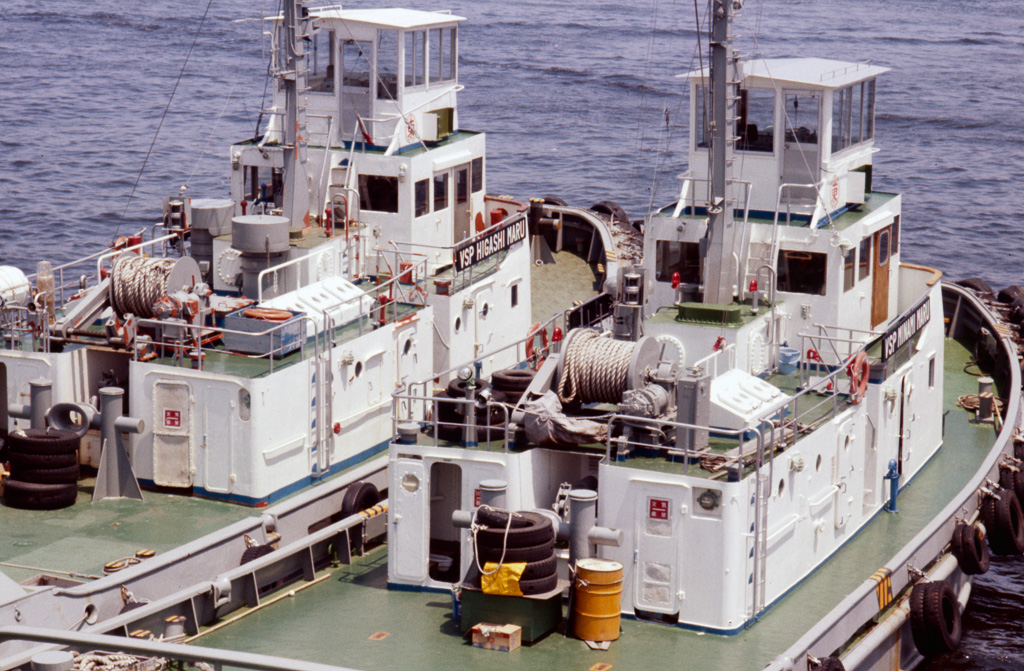 At passenger cruise terminal at Osanbashi Pier, with miscellaneous boats and ships.