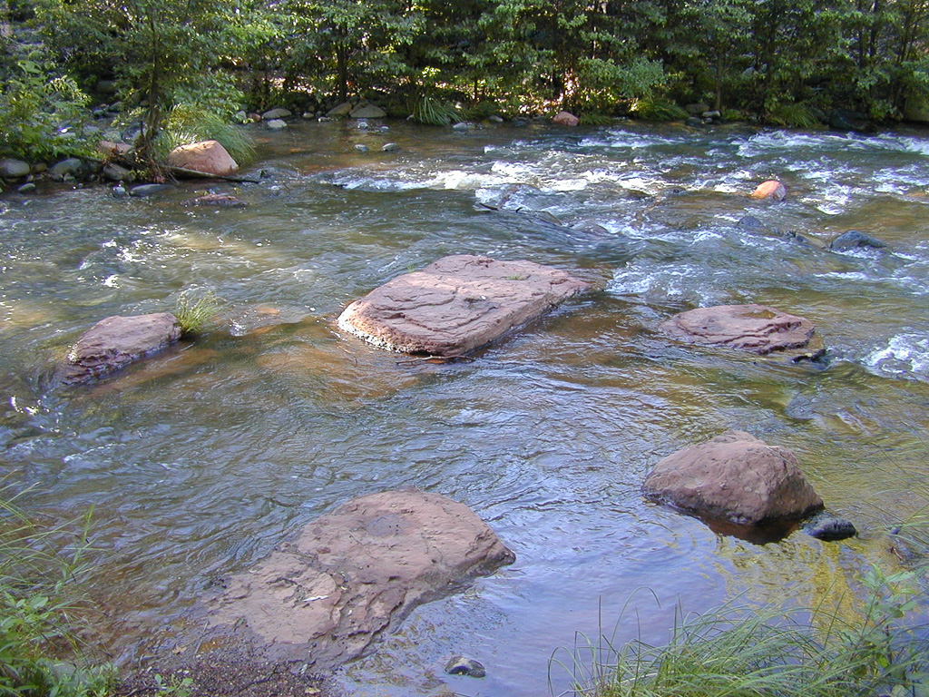 This small rocky pool is part of a pioneer irrigation ditch that joins the creek here