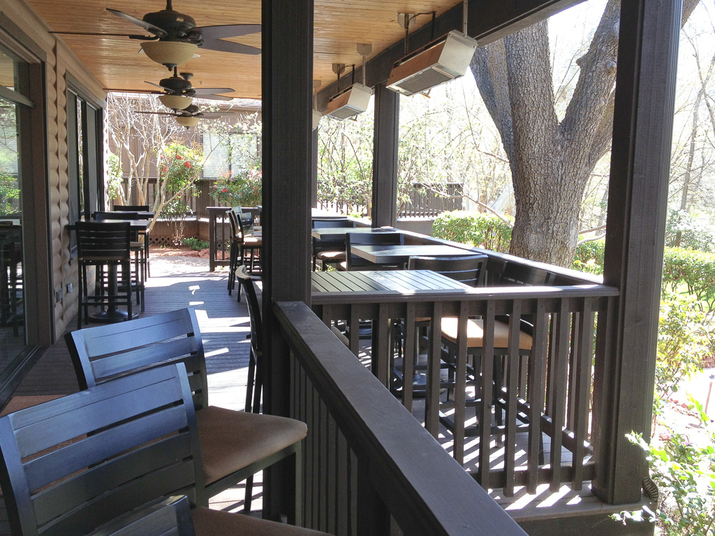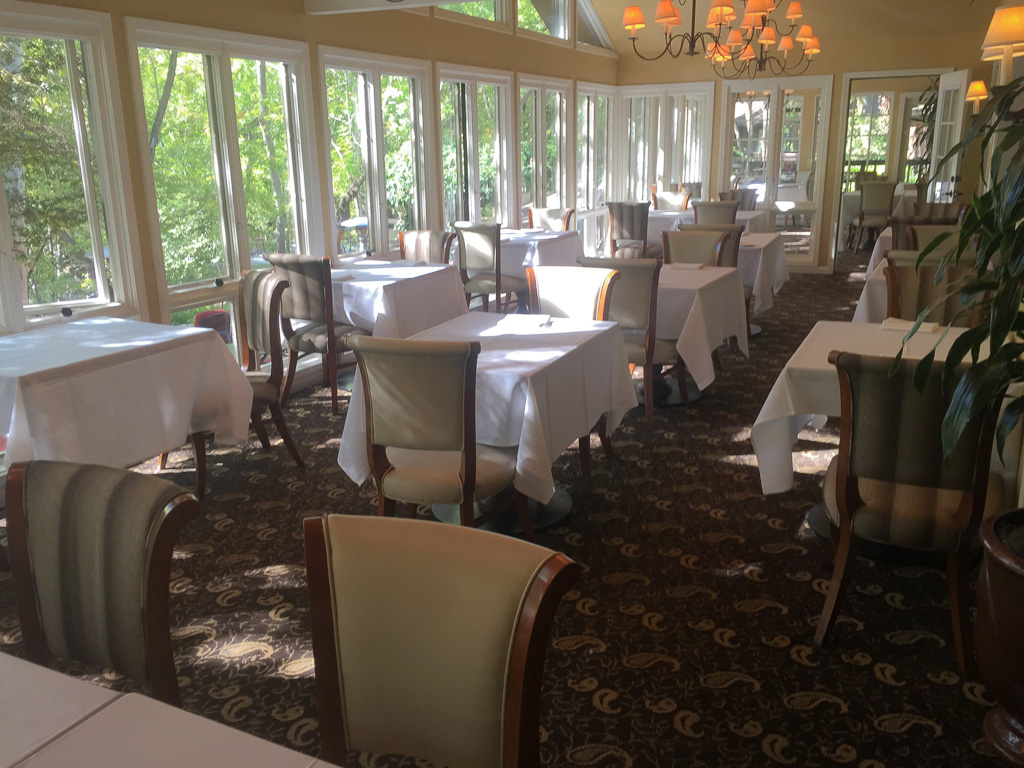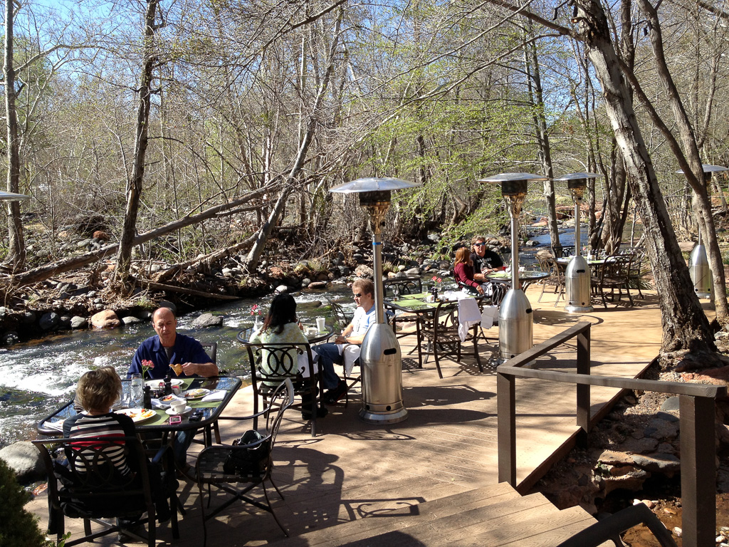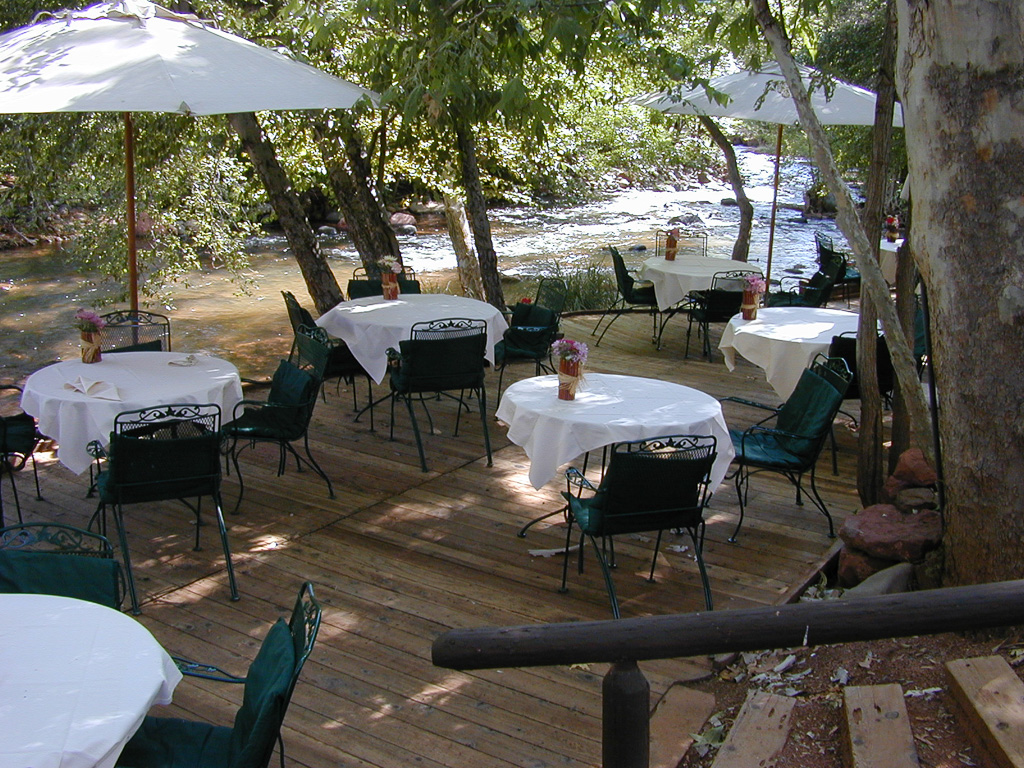 The Auberge has a French restaurant and an informal breakfast-lunch place with a view, but the creekside outdoor dining is popular in the milder months