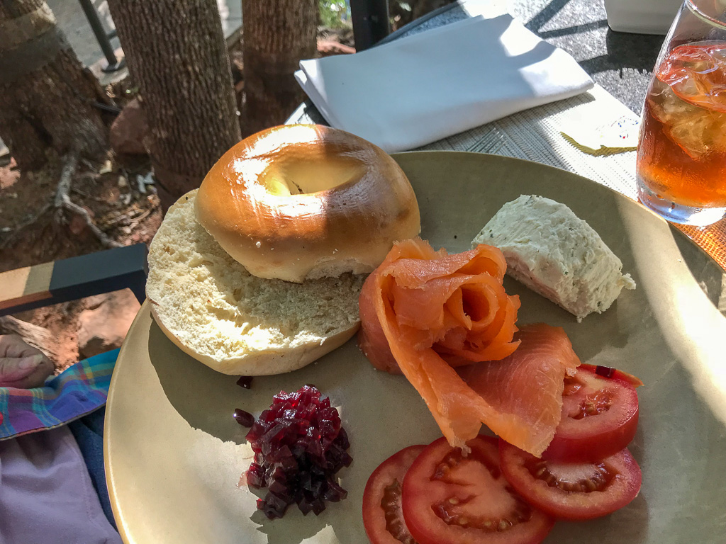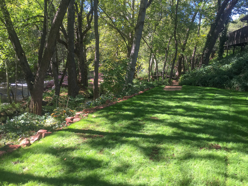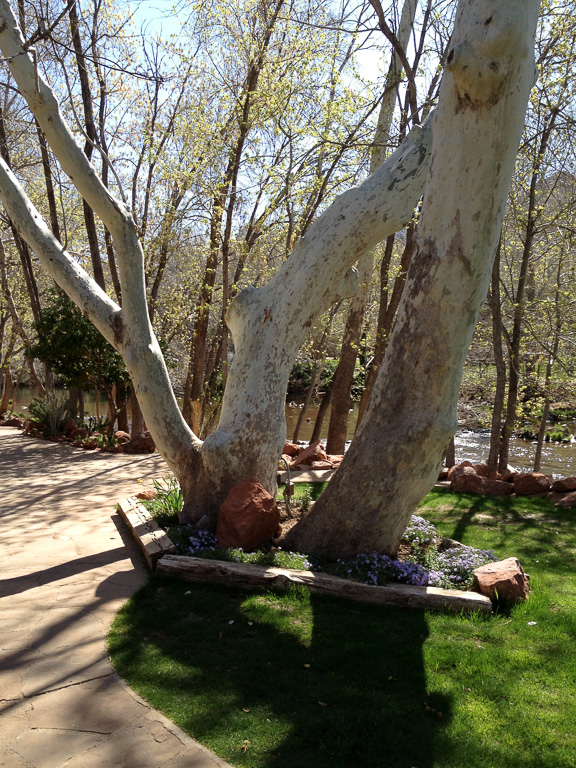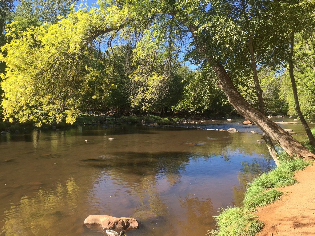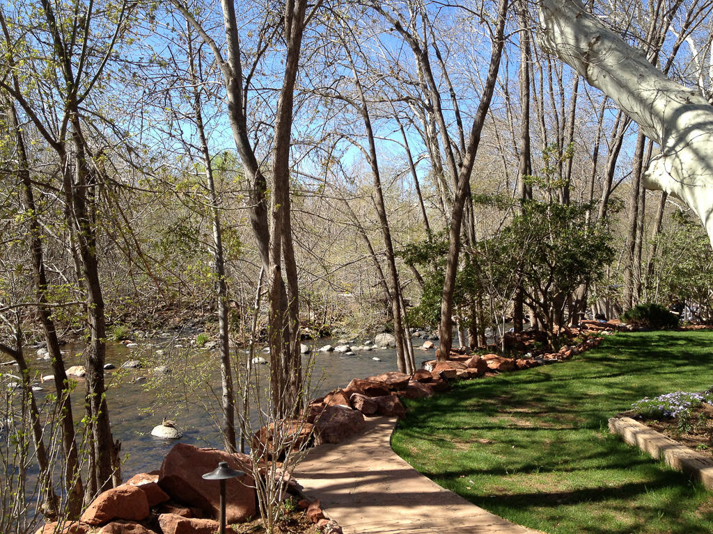 Views of the red rocks and of Oak Creek, and surrounded by flowers