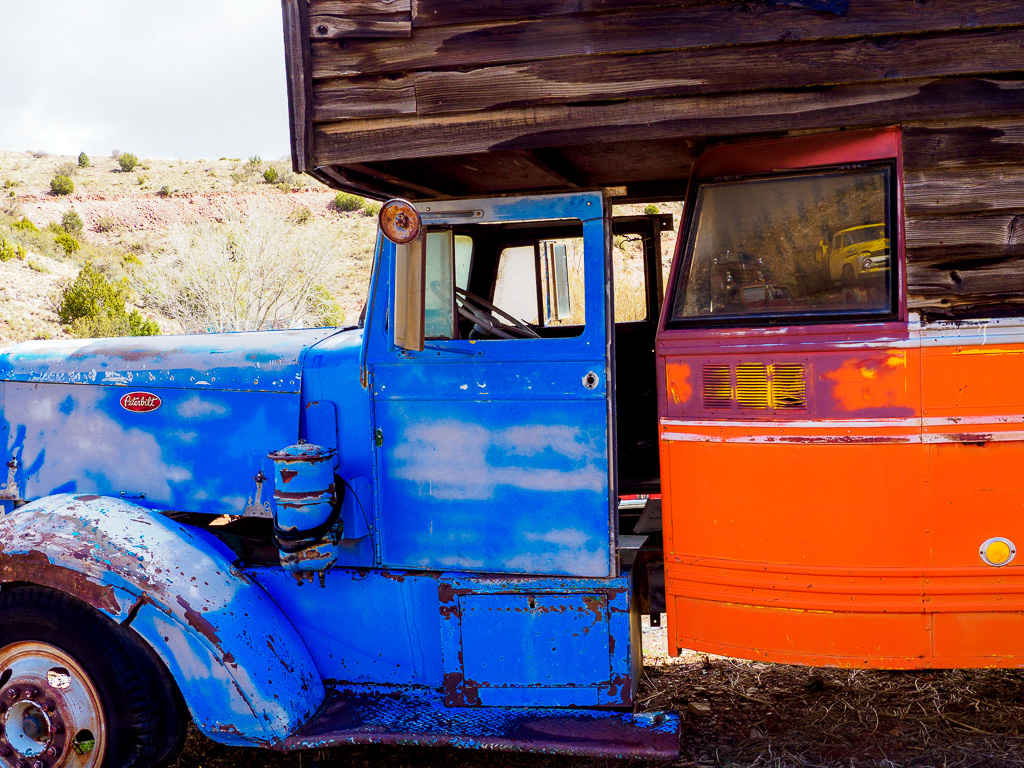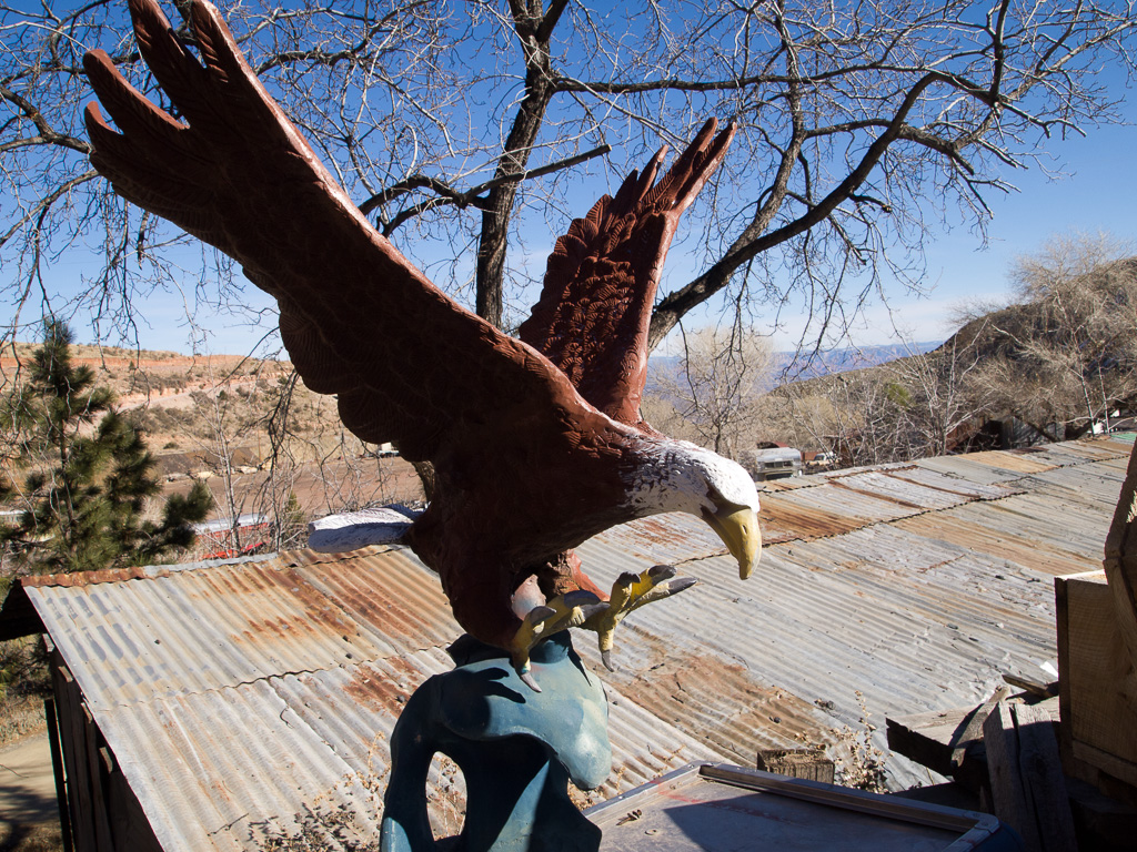 Near the copper mining town of Jerome above the Verde Valley, the Gold King Mine exploited a small gold deposit. After the mine closed it became an informal collection ground for old license plates, signs, tools and other Old West metallic junk. Today the formless collection has been tidied up and is being developed as a museum.